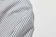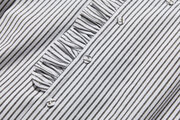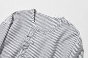 クラシカルなフリルデザインのストライプシャツ 綿麻シャツブラウス ホワイト*ブラック 250419-1