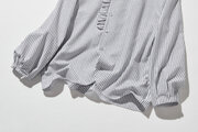 ほのかなヴィンテージテイストが漂う、綿麻素材のストライプシャツ。前立てにあしらった繊細なフリルが上品な印象を与えながら、ゆとりのあるボックスシルエットでカジュアルな着こなしも叶えます。丸みの裾が優しい雰囲気を演出し、洗練されたストライプ柄がきちんと感をプラス。季節を問わず活躍する、デイリーに嬉しい一枚です。