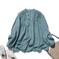 ナチュラルテイストの綿麻シャツブラウス 長袖ブラウス 灰色がかった青色250420-1