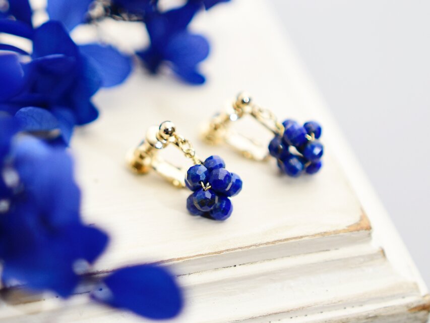 【イヤリング】ラピスラズリ 青の実 金平糖 12月誕生石/誕生日プレゼントにも