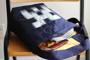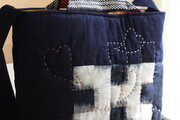 こちらは、古布の絣や型染め布を使い、手刺しの温もりを随所に感じられる、肩掛けも手提げもできる“2WAY仕様”のバッグです。