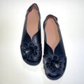 フラワーコサージュスリッポン (Wブラック・合皮) 22.0cm〜26.0cm