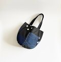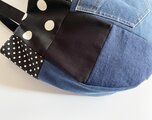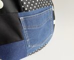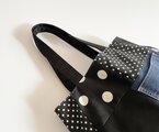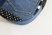 デニムパッチワークバッグ ブラック ドット モノトーン 肩掛け A4