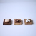 ダークな色でお洒落なウォールナット材 ずっしりとした雰囲気の楢材 やわらかい木肌で優しい感じのタモ材の3種のプレートに仕上げています。