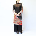 No,8-1 流水に月×黒 ロングワンピース【受注製作】お腹周りのFIT感が気になっていましたが(素材的に)、大変良い感じ。袖のヒラヒラな感じや、襟のカーブもお気に入りです。 透けるのでインナーが必要です(解っていました)。地模様がある&裾模様が意外と上まであるので、下に着る物の丈や色は今から探します。 この時期だからか静電気が起きるのが、唯一 気になるところです。 今後、個性的なワンピースなので、合わせるアクセサリーなども扱って頂けると嬉しいです。