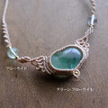 みずみずしく艶やかで、内部のインクルージョンも自然の味わいを楽しめるフローライトには、健康、思考力、集中力をアップさせてくれると云われています。サイドにもフローライトをあしらい、女性らしく優しい印象のマクラメ編みアクセサリーに仕上げました。