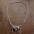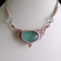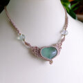 透明感もあり、優しく爽やかなグリーンカラーが魅力的なぷっくりとしたハート型のグリーンフローライトに天使の羽をモチーフにしたマクラメ編みチョーカーネックレスです。