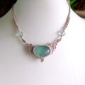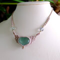 グリーンフローライト(ハート形)天使の羽マクラメ編みチョーカーネックレス 母の日ギフトプレゼント 3221