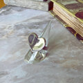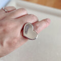つややかなシルバーの輝きと、ボリューミーなフォルムが指先に映えるデザイン
