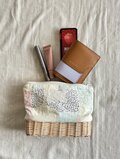 底をラタンで編んだファスナーポーチです。
