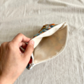 コーヒーで染めた後に乾燥させ、保護剤を塗布した後にポーチ部分を縫い付けるという全ての工程を手作業で行っております。
