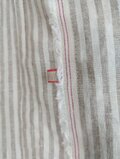 こちらの外ポケットには赤い糸で2本、縦に線が入っている赤耳リネンを使用し、さらにちょっとしたアクセントとして、両端が赤いリネンテープを飾りました。