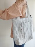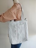ストライプ柄のリネン生地を使い、ファスナー ショルダーバッグを作りました。