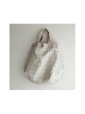 本体には格子柄のリネン生地を使い、バッグ口の口布と、持ち手には無地のナチュラルカラーリネン生地を使いました。