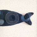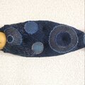 泡はデニムの円に沿って同じく藍染め(遠州染め/浜松)の刺し子糸を巻き込み、色々な糸による素朴な質感をつけています。