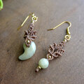 やや暗めのコードで丁寧に編み込んで耳元で印象的にゆらゆらと揺れる天然石ピアスに仕上げました。左右違いで楽しめるアシンメトリピアスに仕上げました。