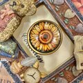 着物リメイク ガラス帯留め 和洋折衷 和ロリータ ハンドメイド アクセサリー ひまわりは、帯元で太陽になる。 GK-97