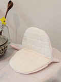 淡いピンク色を重ねた鳥さん鍋つかみ~刺しゅうを施しています