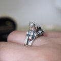 何かの上に香箱座り猫リング