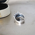 リラックスした猫が香箱座りで何かの上に乗って静かに佇む姿を表現したSilverリング。