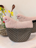 創っていく中でしみじみ感じたのは、芯地や中綿のキルティング加工、内側の生地やポケット布、鳥の身体布部分などそれぞれ異なる生地を使用している為縫い方を微妙に調整しつつ縫製しています。一つ一つ手づくりでもあり、時間を要しますがしっかり使える商品にしていこうと思っております