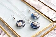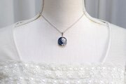 深いコバルトブルーのレジンに、白いお花をあしらった知的で愛らしいペンダント。