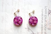 レジンアート ラウンドピアス〈紫陽花②ピンク〉