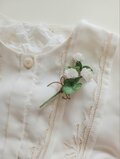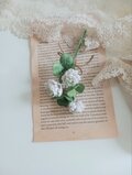 三つ葉1本と四つ葉のクローバー2本、しろつめくさ3本で可愛いコサージュに仕上げました。
