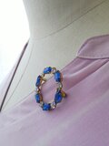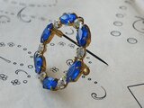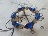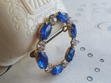 ィンテージ サファイアBlueとClearな美しいGlass サークルブローチ