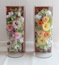 ●プリザーブドフラワー・アーティフィシャルフラワー・ドライフラワー商品は大変デリケートです。細心の注意を払って制作・梱包の作業をしておりますが、配送時の揺れ等により、花材資材のダメージ・花や葉が落ちたりする場合がございますがご容赦ください。