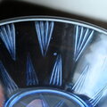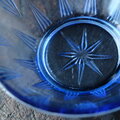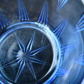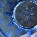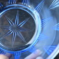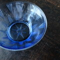 見込みに六芒星◆ブルーで素敵。昭和前〜中期 プレスガラス鉢 碗 古民家 古道具 昭和レトロ