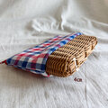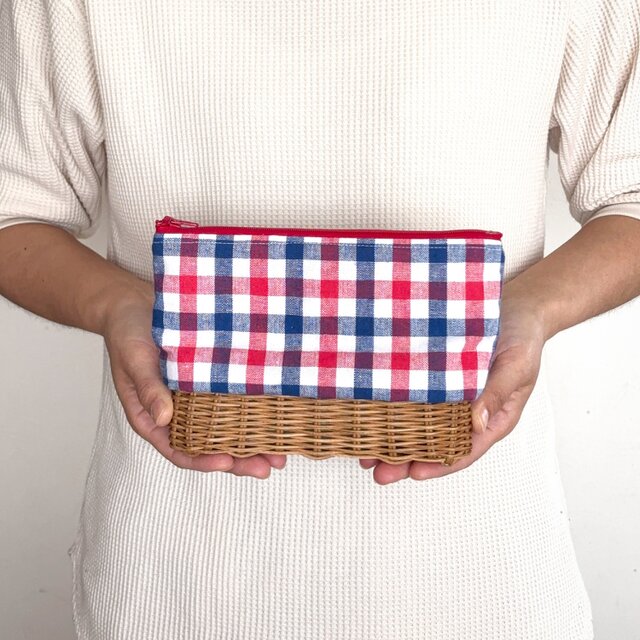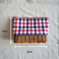 ラタンのポーチ・ペンケース【トリコロールチェック】/自然素材/手編みのカゴ