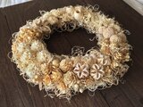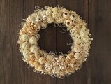 ブナの実やアンバーナッツ、ムタンバナッツ、ニゲラなど10種類以上の木の実などでアレンジしたナチュラルカラーのリース。