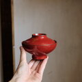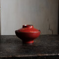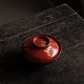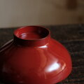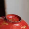 草と蜻蛉◆赤で素敵。古輪島塗 漆芸沈金蓋付椀 漆器 骨董・antiques 古民家 明治〜大正期