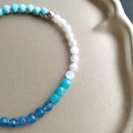 4ミリ粒のマグネサイトターコイズ、ホワイトムーンストーン、ブルーカラージェードの3種類に、ポップな水色が印象的なブルーグリーンカラージェイドを加えました。
