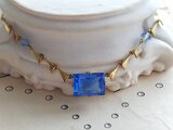中央のレクタングルシェイプのサファイアブルーのGlassの大きさは約14×10㎜ほどです。美しいカット。エッジ部分も綺麗なままで状態はとても良いです。