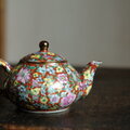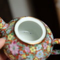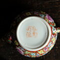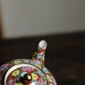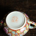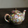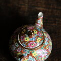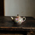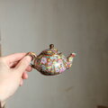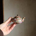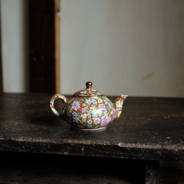 赤にカラフルな花尽くし◆中国産 赤絵金彩小ぶり急須 煎茶茶器 シノワズリ チャイナレトロ b1