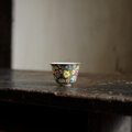 赤にカラフルな花尽くし◆中国産 赤絵金彩小ぶり猪口(茶杯) 煎茶茶器 シノワズリ チャイナレトロ b1