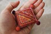 素材:フェルト、刺繍糸、ポンポン、真鍮ブローチ台