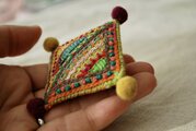 身につけていて元気になれるようなカラフルな刺繍ブローチです。