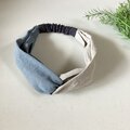 ツイストバイカラーヘアバンド - 上品なアクセントに 心地よい厚みのベルギーリネン(サックス×キナリ×ストーングレー)