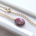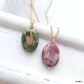 楕円の平丸ビーズは独特の模様がまるで絵画のような神秘性をもつ石、インプレッションの紫染めです。