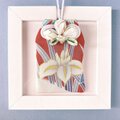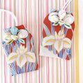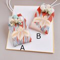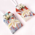素敵なお守り袋が2つ届きました。 絞りの生地の色合いと大輪の花がとても華やかでキュートです。 白梅のものは、奥ゆかしさと気品を感じました。 どちらも大変気に入りました。大切に使わせていただきます♪