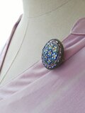 ヴィンテージ 勿忘草のモザイクブローチ/Blue・Grey (約26㎜)