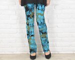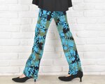 驚きの穿き心地!ハイビスカス柄ろうけつ染めストレートストレッチロングパンツ ターコイズブルー 大きいサイズありのコピー