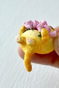 箱の中に、たくさんの毛布があり、その中にとても小さなグレートラネコさんがイビキをかいて、お昼寝をしておられました。あれ〜旗とか蚊取り豚さんがいないなぁと思っていましたところ、さらに小さな毛布にくるまって登場。なんとも言えず、素晴らしい作品で、とても気に入ってます。眺めてると今日一日の疲れが全て飛んで行ってくれます。本当にありがとうございました。どうぞ、これからも素晴らしい作品創造を期待しています。