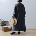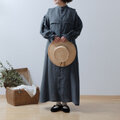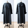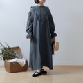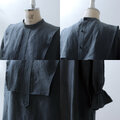 ヨークレイヤーギャザースリーブリネンワンピース/グレー