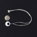 石をごく薄いグレー色のポリエステルコードで繋ぎ、ネック部分はポリエステルコードとライトグレー色の綿の糸を編み込んでいます。