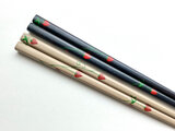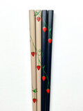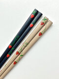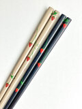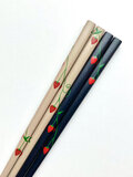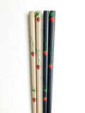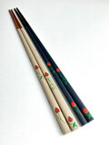 送料無料/数量限定の2膳セット、摺り漆のお箸〈紺色摺漆の箸(いちご)〉と〈白摺漆の箸(いちご)〉です。
