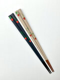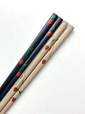紺色の漆で摺り漆をしたお箸(漆絵・いちご)です。